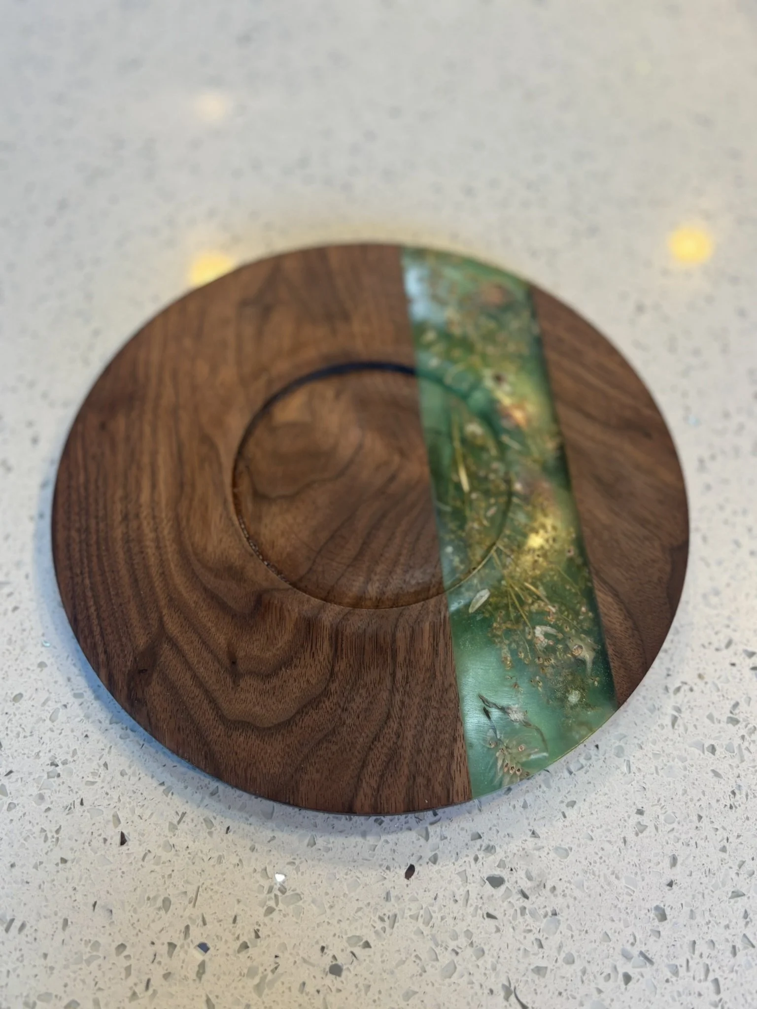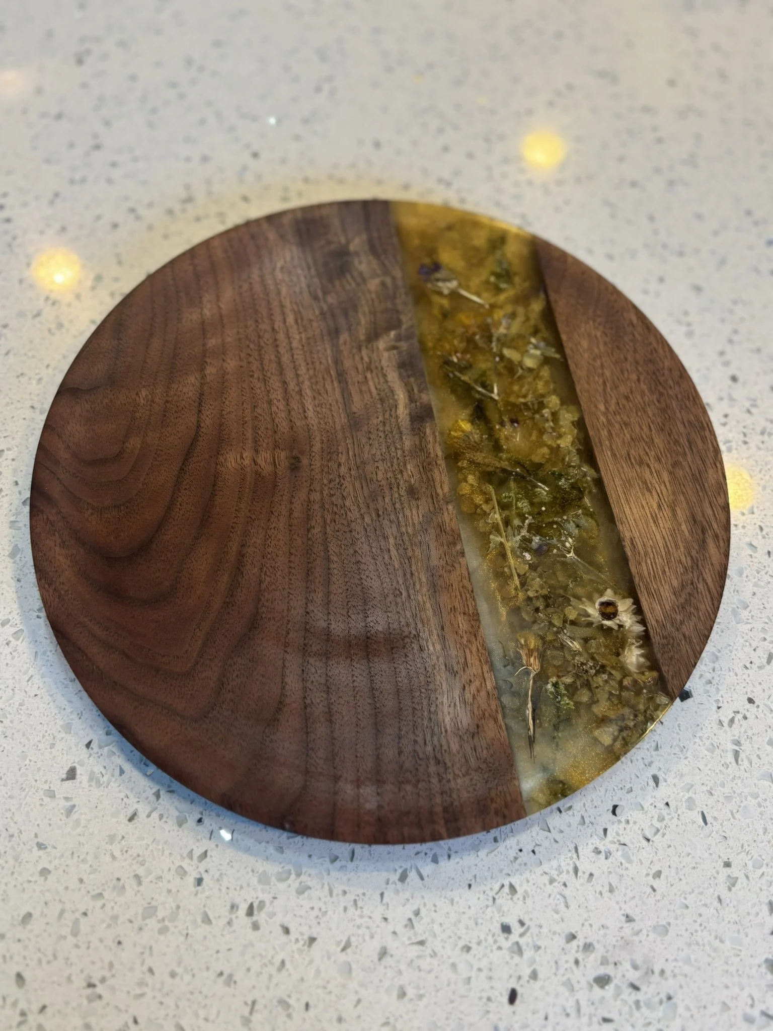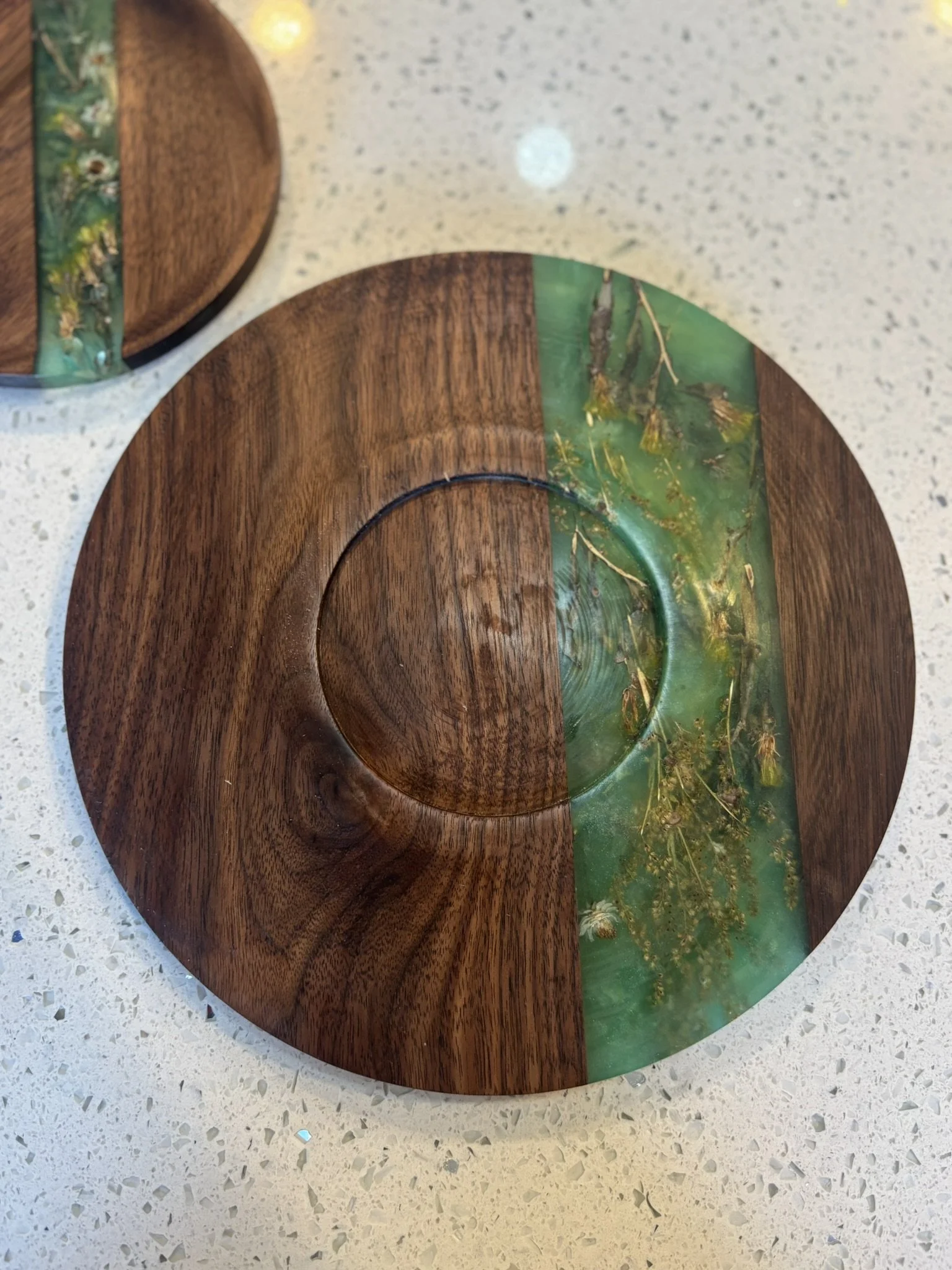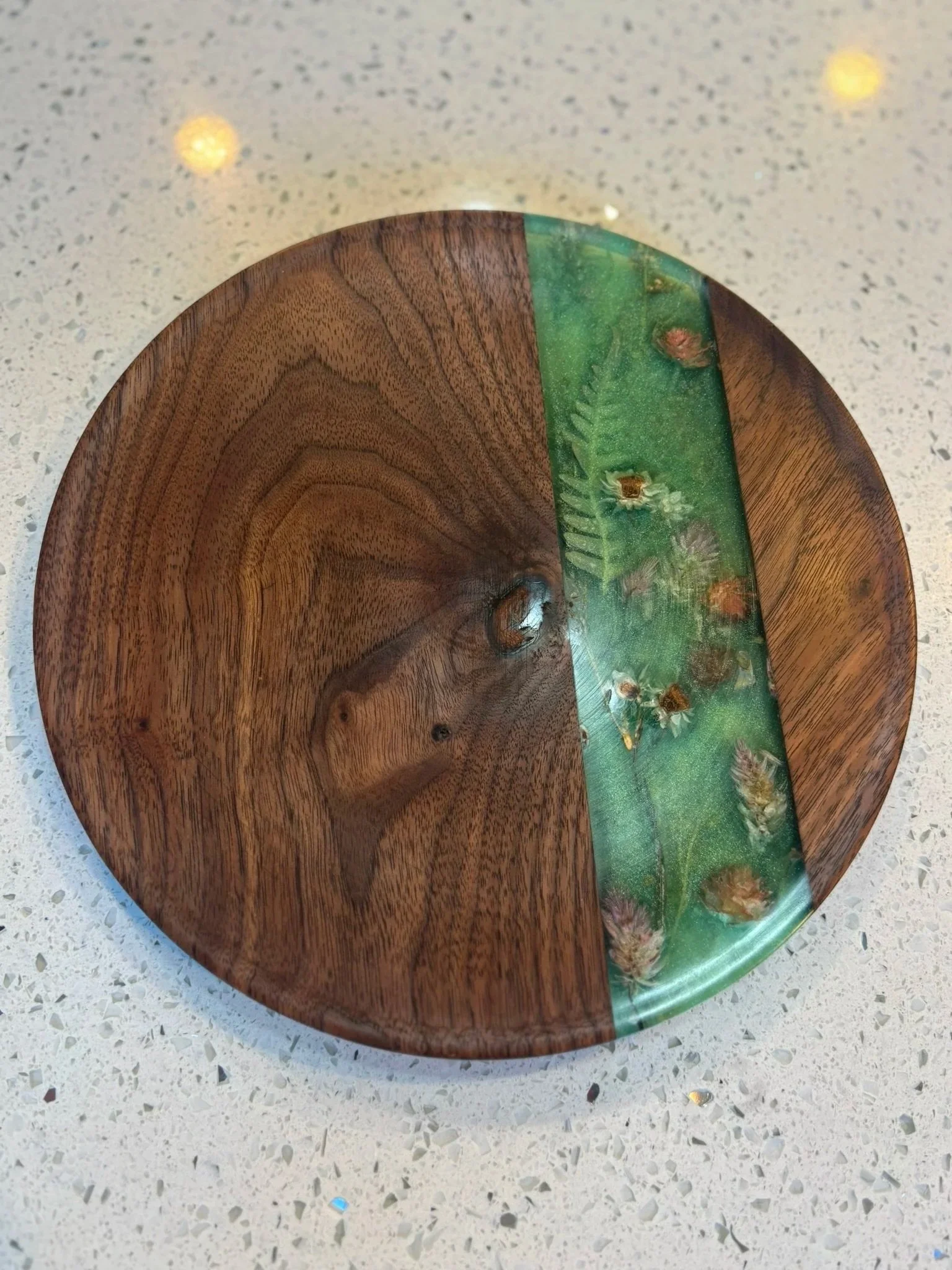 Categories: All Bowls Platters Vases Pens Miscellaneous All / All Bowls Platters Vases Pens Miscellaneous Walnut & Resin Art Platter with Wildflower Inlay $100.00 Add To Cart Added! Handcrafted Wood and Resin Serving Platter $100.00 Add To Cart Added! Walnut and Epoxy Floral Serving Set $135.00 Add To Cart Added!