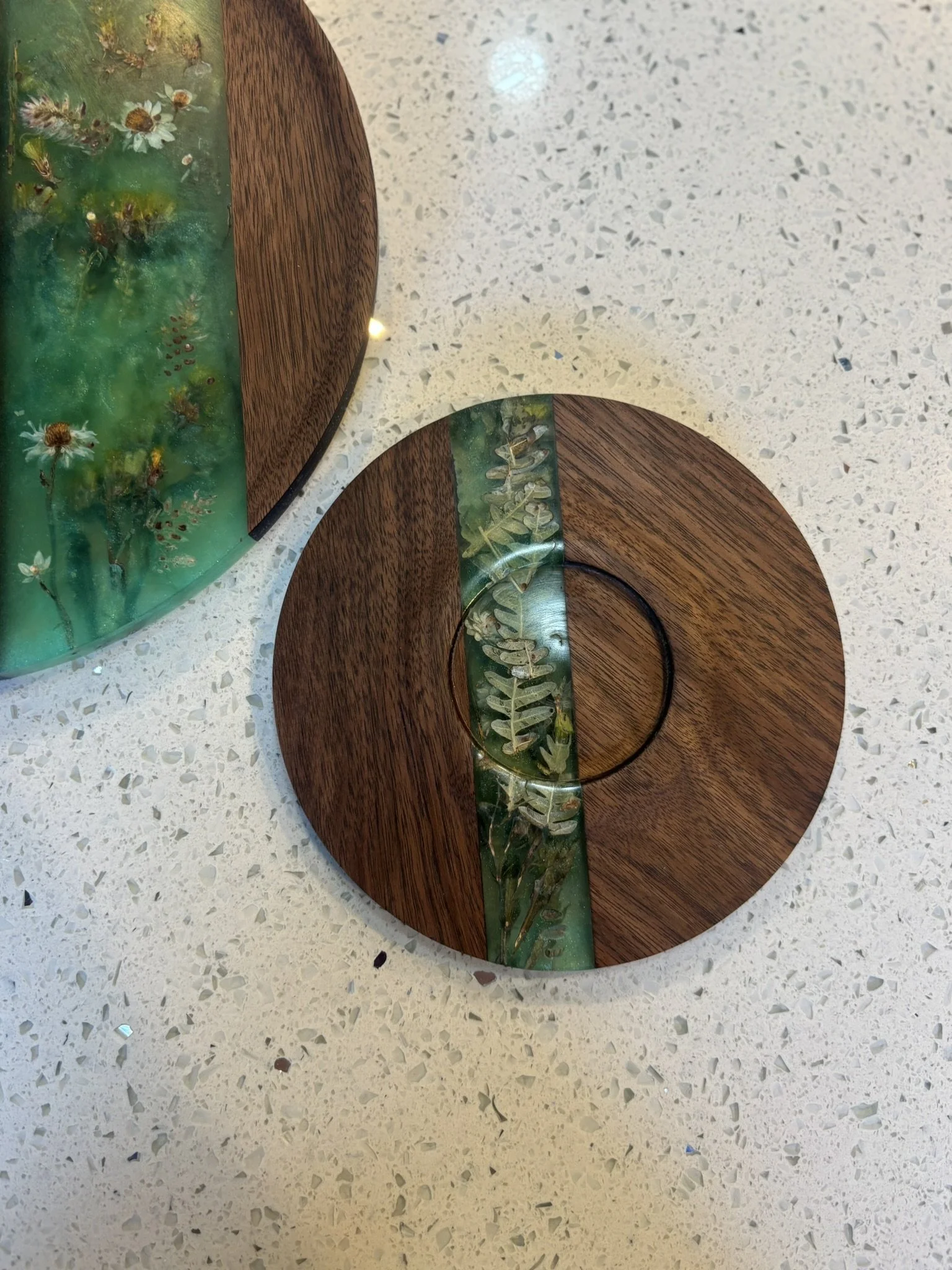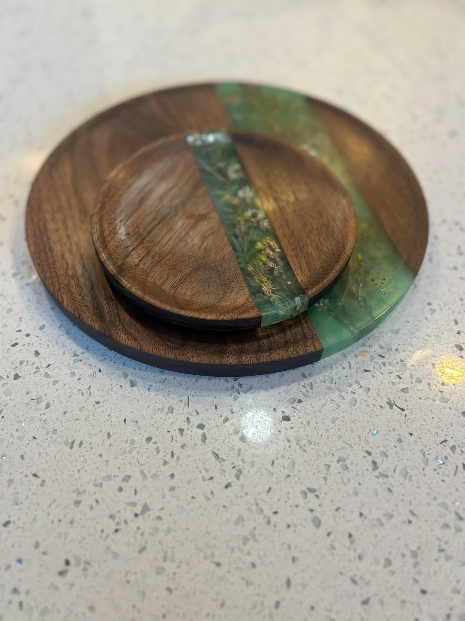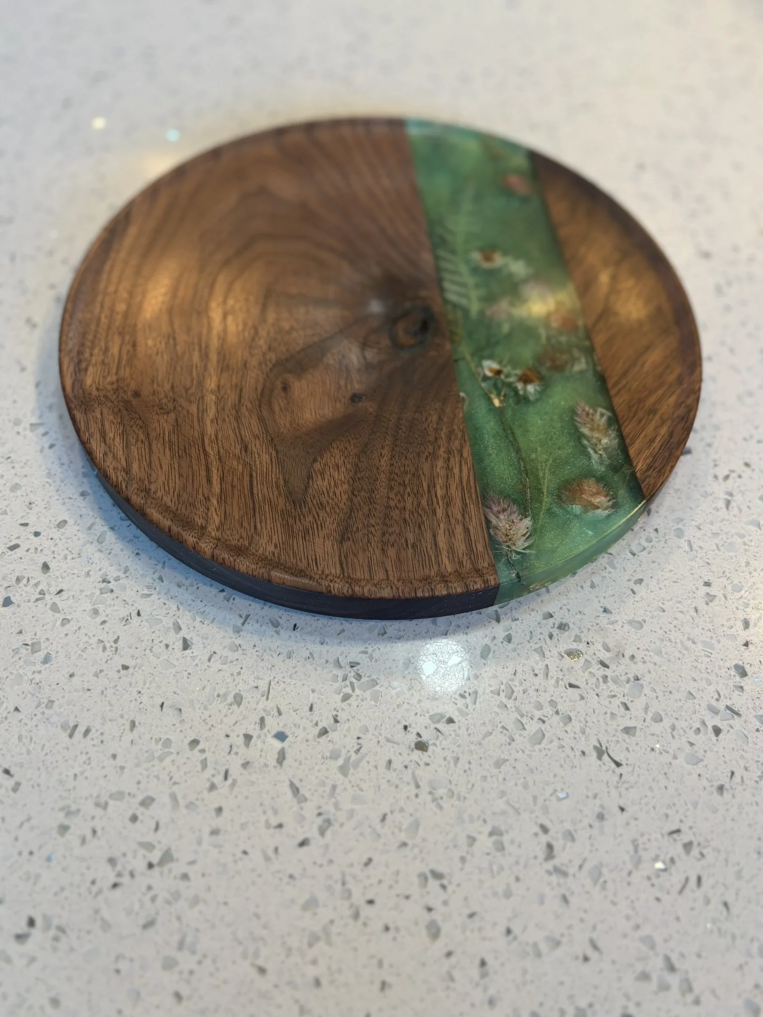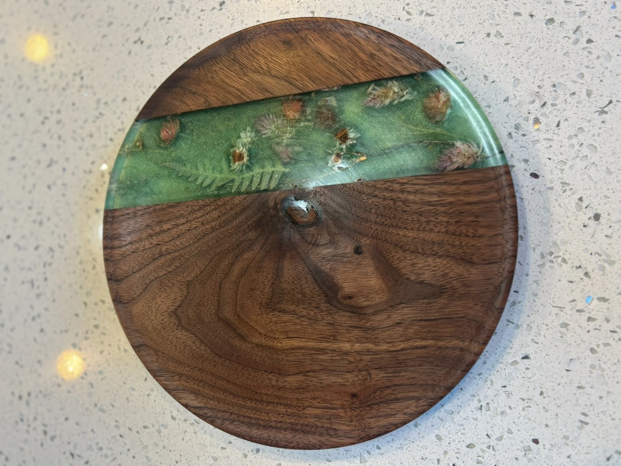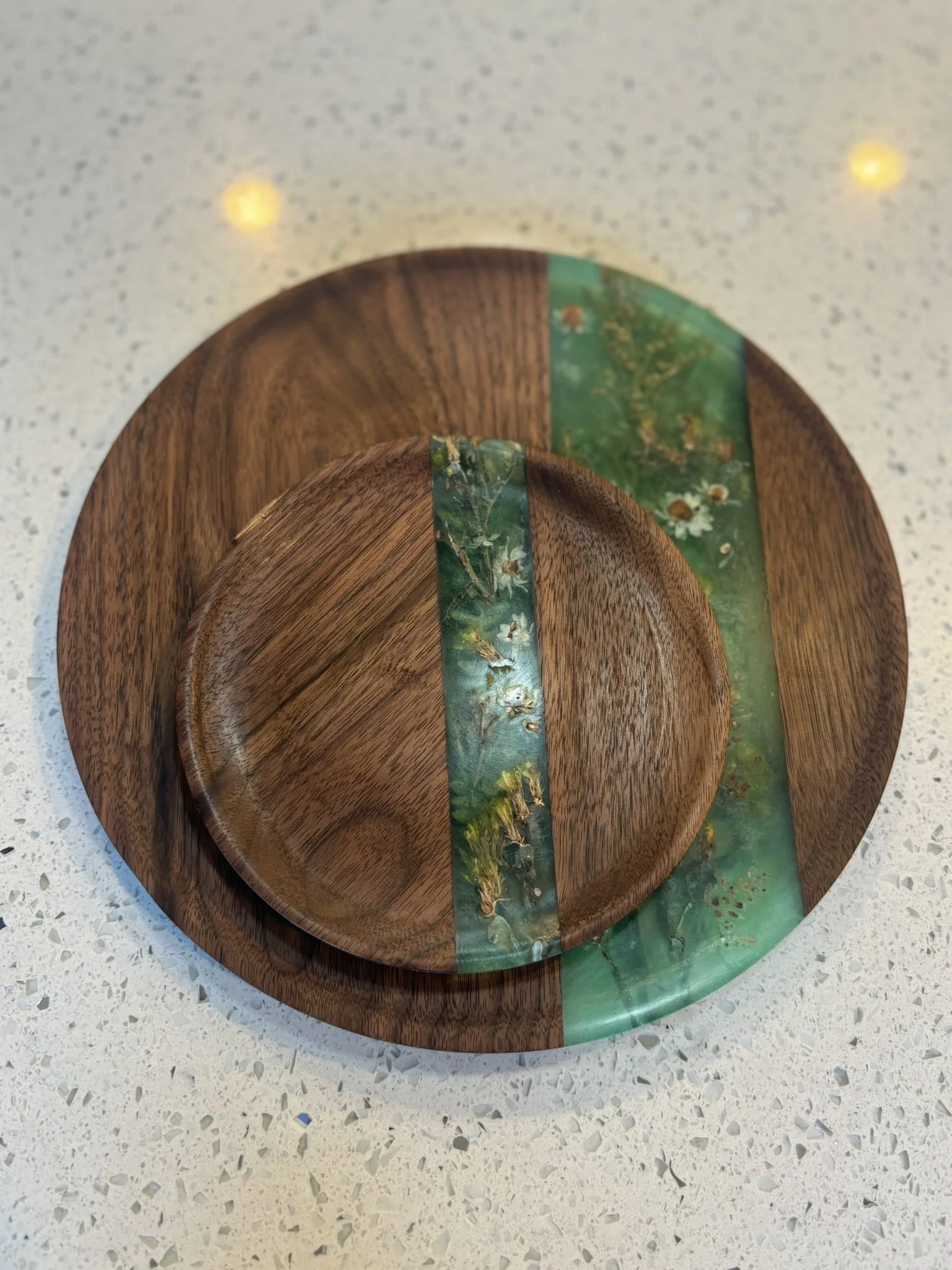 Categories: All Bowls Platters Vases Pens Miscellaneous All / All Bowls Platters Vases Pens Miscellaneous Walnut & Resin Art Platter with Wildflower Inlay $100.00 Add To Cart Added! Handcrafted Wood and Resin Serving Platter $100.00 Add To Cart Added! Walnut and Epoxy Floral Serving Set $135.00 Add To Cart Added!